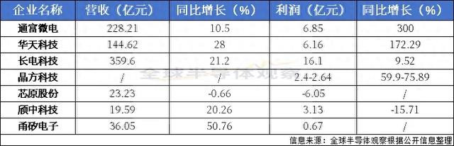除长电科技、华天科技外,通富微电、晶方科技、芯原股份、颀中科技、甬矽电子等多家厂商也披露了财报快报或预测。